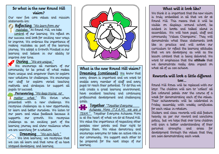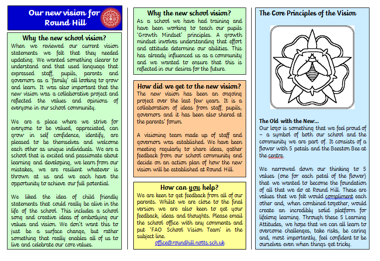 During the last year teachers and Governors challenged themselves to create a vision which moved school to being the best it can be in the next 5 years. We sought parental opinions: