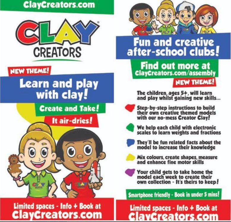 The Clay Creators are now looking for their next group of budding artists. If your child would like to attend the Clay Creators club in Spring 2, please follow the link below to book: