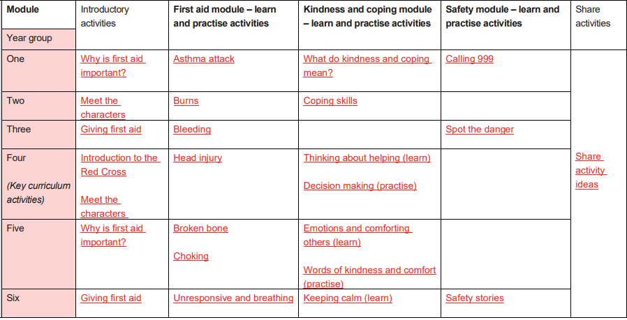 Children have the opportunity to become First Aid Champions using activities from the following modules:
